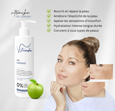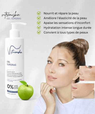 Gel Surgras est un gel nourrissant conçu pour une hydratation profonde. Enrichi en Acide Hyaluronique, il améliore l'élasticité de la peau et apaise les irritations.