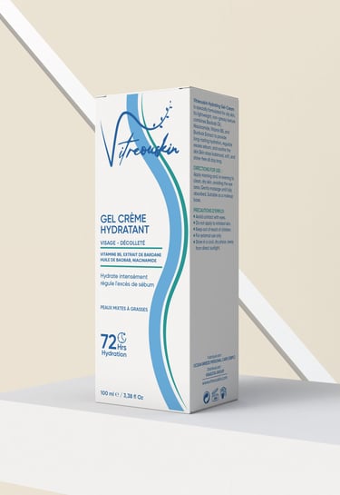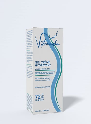 Ce Gel Crème Hydratant Vitreouskin, conçu pour les peaux mixtes à grasses, offre une hydratation intense pendant 72 heures tout en régulant l'excès de sébum. Sa texture légère et non grasse, enrichie en Vitamine B5, Niacinamide, huile de Baobab et extrait de Bardane, laisse la peau douce, équilibrée et sans brillance toute la journée. Idéal comme base de maquillage, il s'applique matin et soir sur le visage et le décolleté.