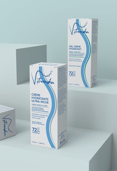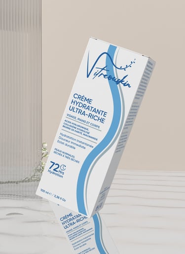Vitreouskin Crème Hydratante Ultra-Riche Cette crème ultra-riche à l'acide hyaluronique, collagène, beurre de karité et niacinamide assure une hydratation intense de 72h pour les peaux normales à très sèches. Sa formule revitalisante améliore l'élasticité et réduit les signes de l'âge, laissant le visage et le corps souples, doux et éclatants. Un soin complet qui apporte un confort immédiat et une peau visiblement plus jeune.